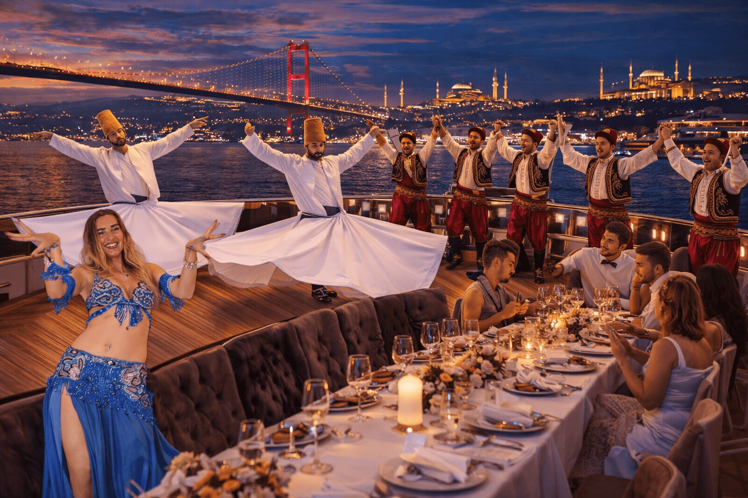Experience an unforgettable journey along the Bosphorus, where fine gourmet cuisine meets the breathtaking beauty of Istanbul’s iconic skyline. Sail between two continents—Europe and Asia—while enjoying a refined dining experience accompanied by stunning panoramic views.