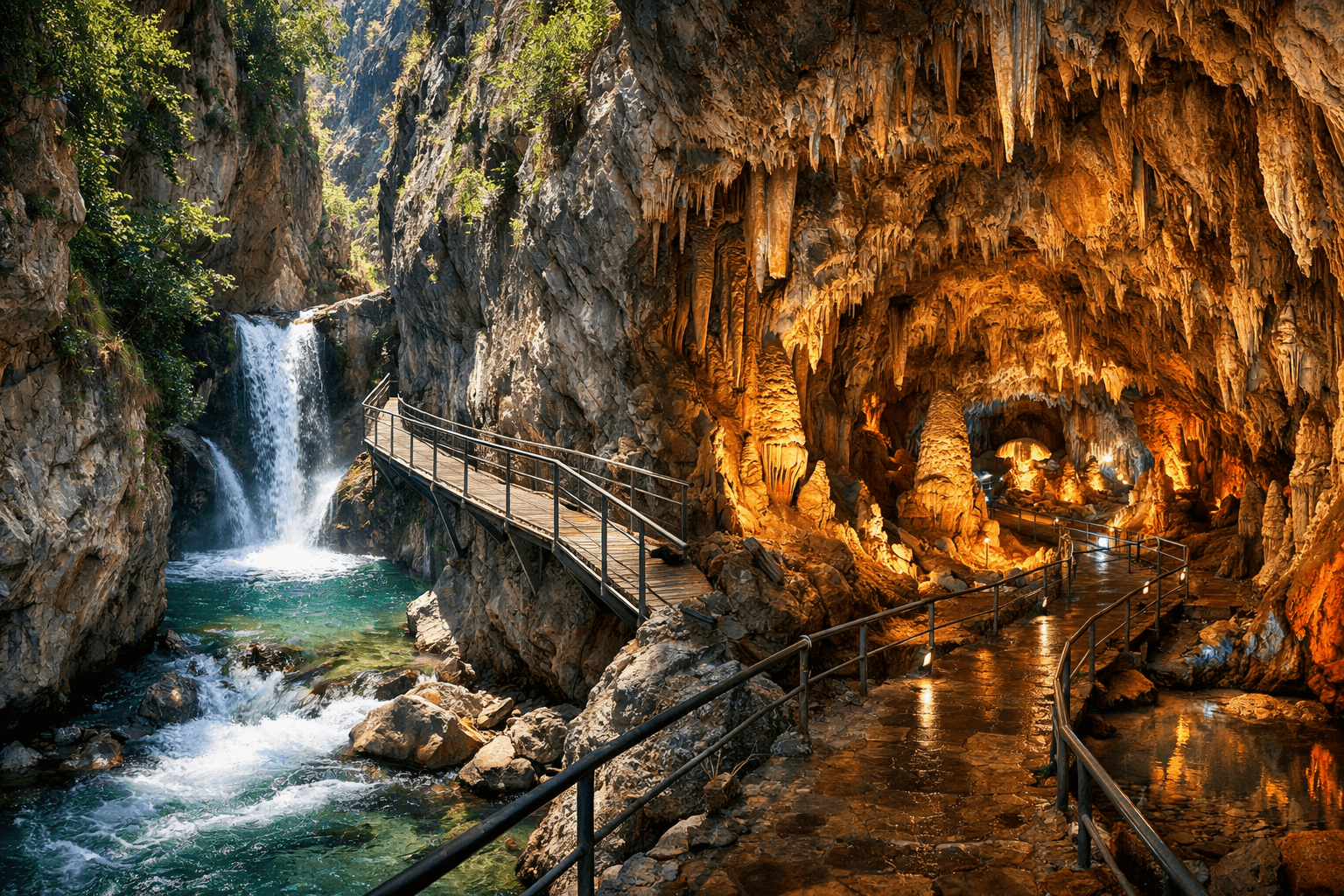 Continue your adventure with a visit to the fascinating Dwarves Cave, famous for its unique stalactite and stalagmite formations shaped over thousands of years. This hidden gem offers a magical underground atmosphere that perfectly complements the canyon experience.